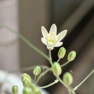 オーニソガラム属 ちぢれ玉。 白い可憐なお花が咲いています。 本体はワチャワチャしてます(笑)