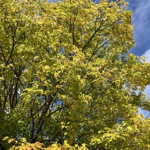 カツラ(桂)の木が黄葉🍂していました。 他の木に先駆けて黄葉します🍂🍂 葉はハート形💛で、黄葉して落葉した葉🍂はよい香りを放つといいますが、よく分からなかったです😅
