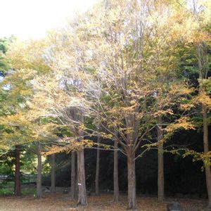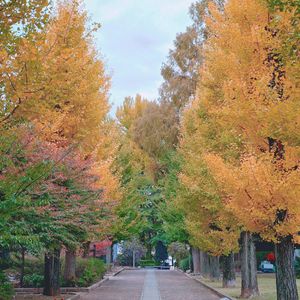 【1〜3枚目】 まだ少し緑が混ざっていますけどね🙄 でもそれがまた「いとをかし」といった感じのイチョウ並木です😀 キレイです🥳 全部黄色になったら、また投稿します(農業試験場内にて) 【4・5枚目】 11日に投稿した赤い木。明るい時間に少し近づけました😀 じつは赤とオレンジが並んでいたようです🤩(農業試験場内にて)