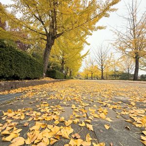 イチョウ (イチョウ科) 中国原産🇨🇳 成長すると30mもの高木に。晩秋に葉っぱが黄色く色づき冬は落葉🍂雄木と雌木があり、それぞれに雄花もしくは雌花を咲かせます。ひとつの木に両方の花は咲きません。雌花は花後に種子をつけ、秋になるとオレンジ色に熟して落ち臭い匂いを放ちます💦 [イチョウの葉エキスの主な作用] 認知症 アルツハイマー病 高血圧症 耳鳴り めまい 更年期障害 神経痛 頻尿 冷え性 アレルギー 花粉症の改善など。 晩秋には道を埋め尽くしてみんなに踏まれるイチョウの葉!こんなお宝 踏んでいたら罰当たりそう😣 千葉県鎌ヶ谷市にて撮影📷