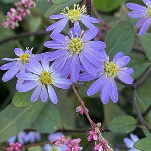 ①②はたぶんシオン属のノコンギク💜 ③④久々のスッキリした晴天にヒヨちゃんもお喜び🐦