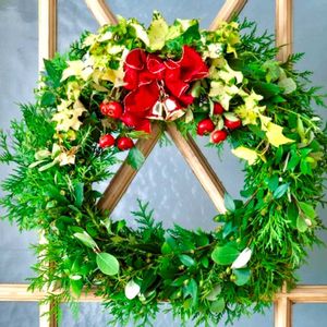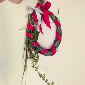 もったいなくて昨年末からずっと飾ったままの巨大クリスマスリース🎄 触るとパラパラ散るので触りたくないという噂も…😇