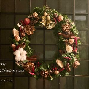 年末モード真っ只中ですが クリスマスリースの記録🎄 こうして見たらとってもいびつかも😂 今年はなんか賑やかになっちゃいました🌿 今は玄関入った壁に飾ってます。 せっかく作ったからもうちょっと🤭
