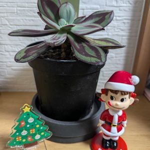 ①ダークグリーンに赤い模様を描く個性的な💚エケベリア ノドローサ💚とサンタ衣装のペコちゃんで今年最後のペコちゃん祭りに参加します🤗💕 ②〜④少し前、友達4人集まってクリスマスリース作りを楽しみましたが、友達作のクリスマスリースも投稿します✋ 🏷ペコちゃん祭り