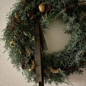 クリスマスリースをもうひとつ こちらはシダーローズをゴールドでペイントしました 年とともに、どんどんキラキラ好きになる✨✨