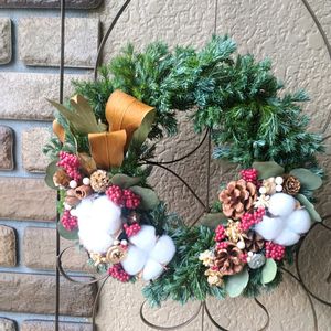 前回作ったリースのボリュームに納得いかず、やり直し~💦 赤い実をつけてドレスアップ⛄️🎄✨
