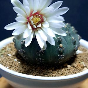 先月、お気に入りの滋賀県の種苗屋さんで、主人が見付けてしまいました❗ 今までは白いモフモフ系だったのに…いきなり「黒」😅💦(今までで最高額👛💸) ①枚目…「ギムノカリキウム黒刺瑞昌玉」普通の「瑞昌玉」てはなく、刺の数とか違うらしく、ネットで調べても高額でした😱 それを、主人お茶を嗜んでしるので、お茶で使うお茶碗(名が入っていて🙇)に入れて、同じく茶道具の天目台(貴人台欅極上湖彩)に乗せて(-""-;)😅💦 ②枚目…真上からの「ギムノカリキウム黒刺瑞昌玉」 ③枚目…電動ドリルで底穴を開けました🤭 絶対、お茶をされるか方、サボテンマニアの方々からは、「何すんねん❗😱👿」と、思われると思いますが、最近特にサボテンに目覚めた主人ですので、ご容赦を🙏😅💦💦💦