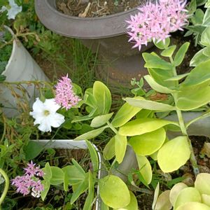 ベンケイソウ & 白いペチュニア 今日、庭で ベンケイソウが 3つ咲いていました🎶