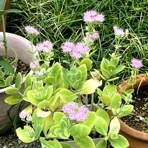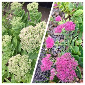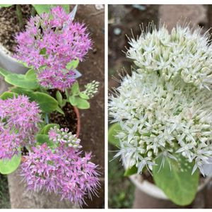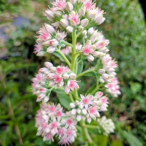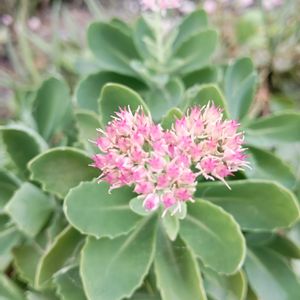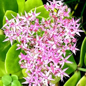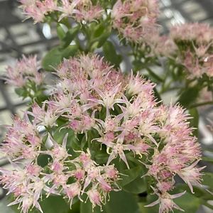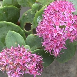 今日のお花 ベンケイソウ お星さまみたいなピンクのお花がびっしり可愛い🩷🩷🩷 ②コダカラベンケイソウ(子宝弁慶草)は子株がいっぱい🌱🌱🌱