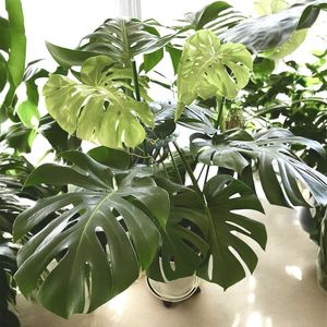 我が家で育てているモンステラ•デリシオーサの中でも、この子は2番目に大きいものです🪴 しかし小窓の数は1番多くて、数えてみると42個ありました😄 ライムグリーン色の新葉も完全に開いて、段々と硬いグリーン色の葉っぱに成りつつあります🍀 朝夕の気温が少し下がってきたのか🤔室内の子たちも葉焼けをしなくなってきました🤗
