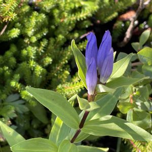 今日のお花 リンドウ ①②オヤマリンドウ リンドウ科リンドウ属 多年草 本州中部地方以北に分布 山地の亜高山帯の湿地や草地に生える。 エゾリンドウに似るが、少し小さい。 葉の形は広披針形で、10〜20対が互生する。 根茎は太く、株から複数の茎を直立し、高さ60cm程度になる。 リンドウより背が高く、茎の途中にも花を付ける。 花は濃紫色で、茎の先端部に複数付ける。 花弁は5裂し、わずかに開き、細長くすぼまった形で、長さは2〜3cmである。 (9/4 上三依水生植物園にて撮影) ③ツルリンドウ リンドウ科リンドウ属 多年性つる植物 北海道〜九州の山地に分布 半日陰の山林や雑木林に見られる。 つるが地面を這ったり、草木に絡んだりして長さが40〜80cmになる。 葉は対生し、3本の主脈が目立つ。 花期8〜10月 淡紫色の鐘状の5弁花である。 (9/4 日光植物園にて撮影) ④シロバナササリンドウ リンドウ科リンドウ属 多年草 葉の形が笹のように尖るのが特徴の晩秋咲きのリンドウである。高さ15〜40cm 花期10〜11月 (2023/11/28 京都の天龍寺にて撮影)