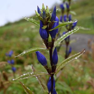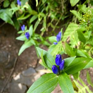 雨に濡れたオヤマリンドウは秋の訪れを感じさせてくれます💜🍁🎶 オヤマリンドウ リンドウ科 リンドウ属 亜高山から高山に生えるリンドウなので、オヤマリンドウと呼ばれる。 リンドウ は背が低く、茎の上部に花を1~2個付けるのに比べ、 オヤマリンドウは背丈が高く、茎の途中にも花を付ける。 「今日のお花」 リンドウ