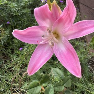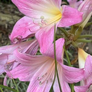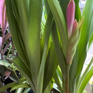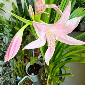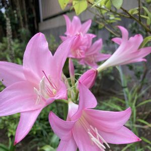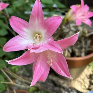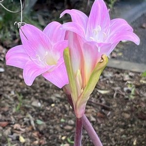 ベラドンナリリー ホンアマリリス💕 今朝7時、もう一つの蕾も開き 無事に2輪とも開花しました。 球根を購入してから3年半。 全然、咲かなかったから 本当にベラドンナリリー・ホンアマリリス?って 心配になっていました。