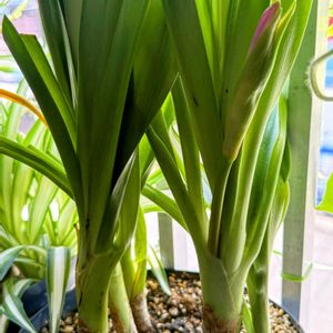 ベラドンナリリー ホンアマリリス💕 購入して、3年半。 今年こそは、今年こそは。って開花を待っていました。 球根はかなり大きくなってきていたのに 咲きそうにないから、ネットで調べて 今年は、秋から水を切って冬に葉っぱを枯らす予定でした。 突然、蕾が! 一日で、蕾が上に少し上がってきて、その翌日の今日は 蕾からピンクが見えて(*^o^*) 凄く開花が楽しみです\(^o^)/\(^o^)/