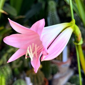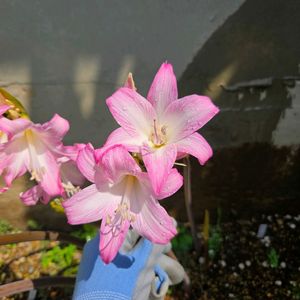 ピンクの可愛いお花…🌸 土からニョッキリ…♡ 表情も可愛らしく…♡ アマリリス…🩷