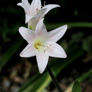 ベラドンナリリー 白鳥 フェイバリットと同時に小森谷ナーセリーさんの白鳥も開花しました! ベラドンナリリー自体がピンクの方が流通量が多いので白色はなかなか見かけませんね! 本来は白鳥はブルンスビギアのように円形に開花するらしいのですが、我が家の栽培場所がリビングの出窓の下のスペースを利用しているので太陽の光が一定の方向からしか届かないため、このような咲き方になっているのかなと推測しています。 2枚目は白鳥とフェイバリットの比較写真です!