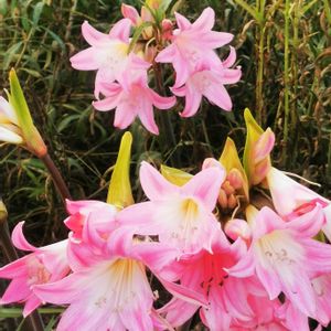 ベラドンナリリー(ホンアマリリス) Amaryllis belladonna ベラドンナリリーが今年も開花しました😍😍 南アフリカ原産のヒガンバナ科植物です。ヒガンバナと同じくらいの時期に花茎を先に伸ばして開花します!ただ、ベラドンナリリーはヒガンバナとは違って花茎が空洞ではないので結構ガッチリしています。あとは、甘い香りが強いのが特徴的ですね!