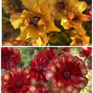 ✨ラナンキュラスラックス✨✨ 💛サティロス ❤️ハデス ②.③サティロス 爆咲きしてます アンティークカラーが素敵✨ ④.⑤ハデス 今年は小ぶりの花です 花は赤から金色に変化✨ どちらもお日様☀️に当たるとキラキラ✨✨と輝いています❣️ ラナンキュラスは花持ちがいいです🤗 今日は風がとても強いです😳 花が揺れ揺れ状態の中で撮影でした‼︎