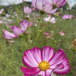 良い天気です 仕事お休みなのに朝からソワソワ でも体はお疲れモード💦 近くにあるもの…🤔 見つけました、コスモス畑 陽当たりが良いのか大きな花も咲いています 風当たりが強のか川側の秋桜さん 成長が遅れがちに頑張れ〰️🌸🌸
