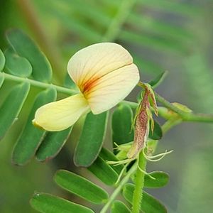 クサネム(草合歓) マメ科クサネム属の一年草 近所の田んぼの縁に生えているのを よく見かけます。 淡い黄色の蝶形の花が咲き、実をつけ始めていました。 豆果は、熟すと、節のところでポキポキ折れて、田んぼに落ち、水に浮いて、流されたりして、そこから芽を出すそうです。 種子の形や大きさが、玄米そっくりで、 混入すると、除去が大変で、 稲作農家さん泣かせの草だそうです。 「生えてますが、何か(・。・)?」 …というような顔に、花が見えてきました(^_^;) 夜や風雨にさらされると、睡眠運動をして、葉を閉じるそうで、 ネムノキの葉に似ている草 ということで、 クサネムと名前がついたそうです。
