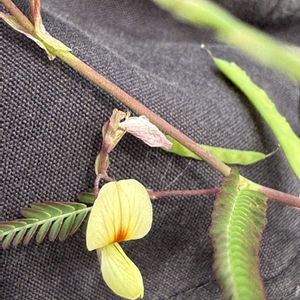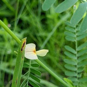 敦賀市 中池見湿地にて クサネム 湿った場所に生える。 花は薄い黄色です。 葉は夜になると閉じてまるで 眠っているようなに見える。