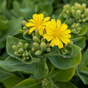 角島の岬に咲いています✨ 🔰👀です 見たことあるようなお花ですが… 雰囲気が違います🧐 🔍️するとホソバワダン(細葉海菜) 島根、山口の日本海側から沖縄の海岸端に分布とありましたが… どうでしょうか?🤔 キク科 アゼトウナ属 花期 10〜11月