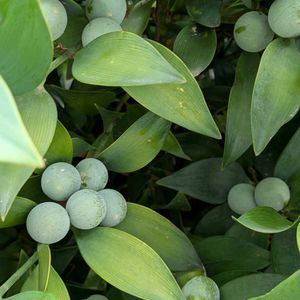 萩の松陰神社で垣根越しに初めて見ました 美しい葉と1センチ強の美しい実です✨ 🔍️ナギ(梛)の実でした💕 神社の植栽として多く使われるようです。 葉が縦に引っ張っても切れないので縁起の良い木とされています 実はその後紫褐色になる マキ科 ナギ属