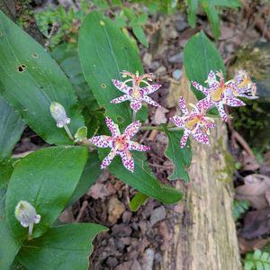 いつもの散策道に咲いているのを初めて見ました✨ ヤマジノホトトギス(山路杜鵑) 赤紫色の斑点が美しいホトトギスですね💕 やっとヤマホトトギスとの違いが分かるようになりました😁 ユリ科 ホトトギス科 花期 8〜10月