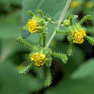 山の中の散策道はコメナモミ(小雌菜揉み)ロードになってます✨ 黄色の小さな地味〜なお花(3裂する舌状花と5裂する筒状花)ですが… 引っ付き虫になります⚠️ キク科 メナモミ科 花期 9〜10月
