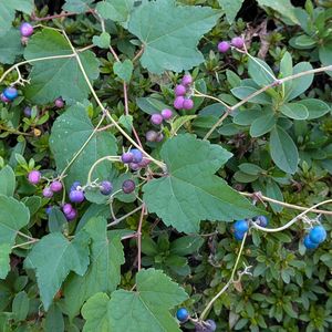 今日から11月🍁 1️⃣急の寒さで野葡萄がきれいに色づきました💕 ブドウ科 ノブドウ属 2️⃣皆さ〜ん!23日はコウヤボウキマラソンの日です✌️ 🏷️を付けて一斉スタートしましょう💕 キク科 コウヤボウキ属