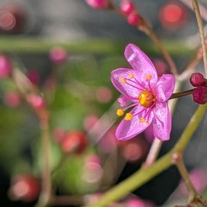 2年前にタカネハンショウヅルの挿し木苗といわれて頂いたものが初めて咲きました💕 1.5センチ位のお花です。💘 初めて見ますがこのコはタカネハンショウヅルです💕