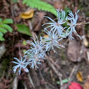 いつもの山の中の散策路 何故かな…? 今年は2株だけ… 特徴の葉っぱも無かった…💧 テイショウソウ(禎祥草) 5裂した小花が3つ集まっている 2センチ弱 モミジハグマ属では大きいかな! キク科 モミジハグマ属 花期 9〜11月 分布 千葉から近畿南部太平洋側