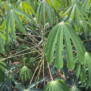 おはようございます🌅😊 今朝も曇り空でムシムシします☁️💦😅 ✨今日のお花✨の🌿ウコン🌿が見つからなかったので、代わりにお出かけ先で撮影したキャッサバを投稿しますね😆👍🌿🌿🤍🤍💚💚 キャッサバ、初めて見ました😆👍 カッコいいです😉👍✨🌿🌿 何の植物だろうって思って、Googleレンズで調べてみた所、キャッサバって出たのでこれがキャッサバかと思いました😆👍 しかも畑で沢山育てていました😆👍✨✨🌿🌿 本当、素敵です😍💓✨💕