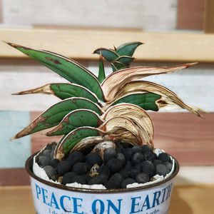 ダイソー スタンダードプロダクツのディフェンバキア。 白い部分が多いのと、濃いグリーンの途切れ途切れのエンボス加工っぽい縁取りが良いです。 ティキという種類かな。