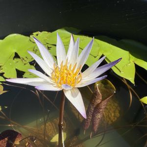 京都植物園の温室の入り口には、睡蓮の池が有ります。 一株だけど、夜咲睡蓮が、昼間に咲いていました♪