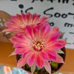 おはようございます あっという間にお盆休みおわっちゃいました 9日も休んだかしら? 前半はお天気グズグズ 後半は、身内のご不幸でバタバタ 35度超えの礼服はキツイ💦 納骨がめっちゃしんどかった さて、今日から仕事 ダルダルな私 はぁ( ´Д`)=3行きたくない病にかかりましたよ 何度も咲いてくれるサボテンの花