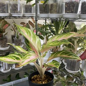 まだまだミニサイズでかわいいアグラオネマ•リップスティック•カンザ💕 小さいので7センチのミニスリット鉢に植えてあります🪴 鮮やかなピンクの葉脈と葉裏がとても美しい子です😍 茎もピンク色をしています🩷