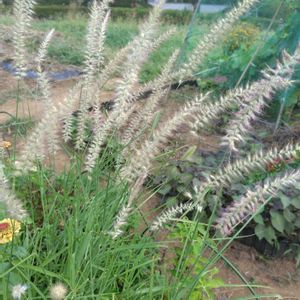 ネコジャラシの観賞用の名前をgoogle先生に聞いたところペニセタムとの回答。 道端に生えてるネコジャラシよりは数周りふさふさが大きく花畑のアクセントになっていました。