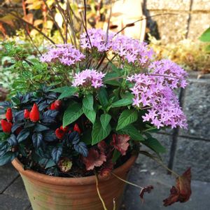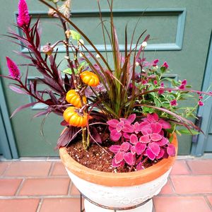 ハロウィンの秋らしい寄植え2種🎃 今年もハロウィンの寄植え作ってみました。 ソラナムパンプキン,ヒメコリウス, セロシア(ケイトウ),センニチコウ, パープルファウンテングラス, アルテルナンテラポリゲンス