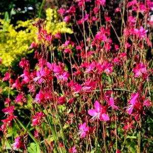 おはようございます。今朝も既に暑いです。日陰は風もひんやりしてきましたが、日差しがやばいです。秋だね。 本日の庭。ガウラがどちゃくそ咲いてます。実物はこれが横に3倍くらい(高さ1m×1.2m四方くらい)で、圧がやばいですw 意外と暑さに弱いと知ってから(自生地のカナダは夏の平均気温28度だそうで)、風通しのいいカーポートのギリギリ日が当たる所に、株元は暑くならないように、大きい鉢で囲って過保護に育てたエキナセアが開花しました。今まではポット苗の時点で結構弱ってて、すぐ枯れるパターンだったのに、全く痛むことも弱ることもなく育ってびっくりしてます。 ヒガンバナが茂みの中でキレイに咲いてました。なかなか見えづらい場所なので庭主しか楽しめない感じですけど、とっても快適そうに咲いてくれてるのでまぁいっか。リコリス全般、乾いたところが好きっていわれてますが、うちの子たちは敷地の中でもよく水やりするところとか、日陰の湿度が保持されやすいところでよく育ってたくさん咲いてくれているので、意外と水が好きなんだなーと思います。 ペニセタム ブラックスパイクの穂が出てきました。キラキラです。オーナメンタルグラス類もたくさん育てていまして、だいぶ穂が出たりボリュームが出てきたので、一回り大きい鉢に鉢増しして、南の道路側に配置してきました。キレイなので道行く方々にも楽しんで貰えたらいいなーと思います。