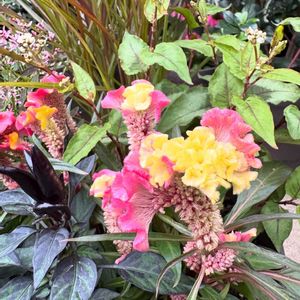 セロシアの寄せ植え ホットトピックに一目惚れ 昨日行った 日比谷公園ガーデニングショー ハンギングマスター達の素敵な作品にも使われてました✨(4.5枚目) 栄養系のセロシア 花序が平たく広がるトサカケイトウタイプ コンパクトでまとまりのよい草姿 分枝性に優れておりたくさんの花を咲かせる 鮮やかで色持ちが良くドライフラワーにも最適