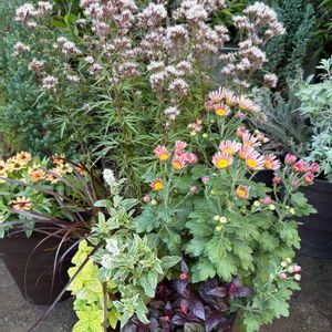 木曜に作った寄せ植え 秋の里山の感じで…🤔 小菊(マム)が咲いてくれば もう少し華やかになるはず