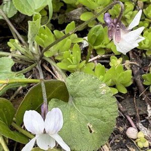今日の散歩で見つけたスミレ。 すでに確定していたスミレと一緒かなと思います🙋♀️ 白花 マルバスミレ❌アメリカスミレサイシン 薄紫 オオタチツボスミレ ※かしさまに白花はアメリカスミレサイシンと教えていただきました。
