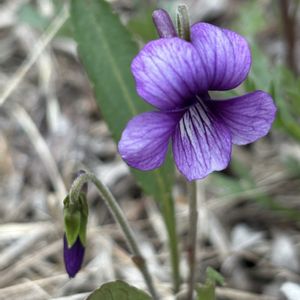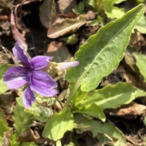 ノジスミレかなぁと思います🙋♀️ ・青みがかった紫色のお花 ・距が細長い ・葉が披針形で先が尖る ・葉柄にわずかに翼がある 以上の点でノジスミレかなと思いました。 よろしくお願いします🙇♀️