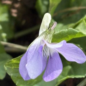 3個目のスミレ 18.コスミレ〜かな。 ・花は淡紫色〜少し濃い目の紫色 ・上弁がウサギの耳のように立ち上がる ・正面から見ると雄蕊や雌蕊がハッキリ見える ・葉が卵形で先が尖る う〜ん スミレ難しいですね😅