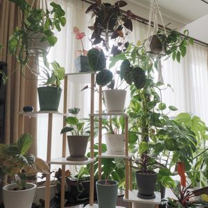 リングオブファイア、フラミンゴ、ハイナエンシス、ピンクドラゴンの植え替えが完了👍 これで小さな鉢は終わり😊 スタンドの配置も植物の入れ替えをしてスッキリ✨️
