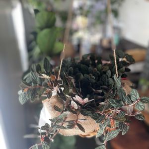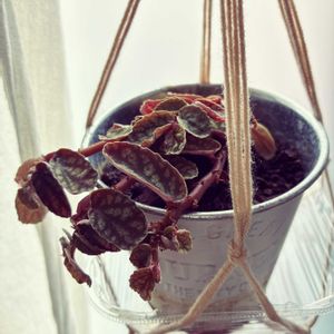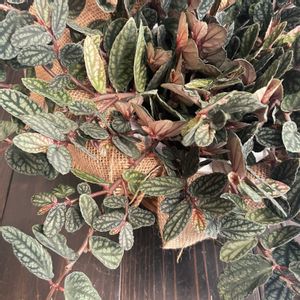ペリオニアレペンスは持っていて、シリーズマニアとしてはプルクラを探しておりましたが手頃なサイズとお値段の子にお目にかかることがなかった🥲 が、が、やっとやっとかわいいサイズの子に出会いました〜🙌 めっちゃかわいい😍 この葉脈とところどころピンクがあるとこがなんとも乙女心をくすぐります😁 で、ちょっと陽の当たるとこに置いてたら、ピンクの葉が焦げた😱 すぐ吊り鉢に植え替えてごちゃごちゃの中に入れたら、全然目立ちません🤣