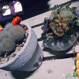 🏷️石の日 🏷️ハロウィン月間 🏷️みんなでハロウィン 🏷️毎月13日と14日は葉挿しの日 1⃣オジゾータンリメ鉢に植えた雪晃さん🍀 あんまり成長が見られないけど 大丈夫? カエル貝鉢の寄せ植えもカーポートに 置いてるからなんとか夏を 越せたよ💓 2⃣ずっと言ってる葉挿しのポット上げも やるやる詐欺にかかってます💦 syamu日記📝 夕方から雨だから、なすと柿の収穫や 畑の多肉ちゃんの植え替え選抜を しようと思ってたら… 2時過ぎに外に出たらぱらぱら☔ 空見たら青空もあるけど曇り空☁️ しばらくするとザーッと降ってきて ビニールかける余裕もなし💦 予報では夕方計3㍉の降水量 だから 雨ざらしのつもりだったけど、 結構降ったので5時頃雨が上がった のを見計らって水滴とばしとビニール掛け😺 もう奴ら(キセルガイ)がやってきてて 殺生ゴメンニャサイ🙏
