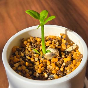 直径4.5㌢ほどのミニミニ鉢から 可愛い🌱が出て来ました 何の芽だと思いますか? 答え 2枚目 輪切りにしたレモンの種を1粒、鉢にポィ 種が膨らんで来て、🌱を出しました 3枚目は、6月に迎えた鉢植えレモン🍋 家に来た時は、小さな青い実が5つ 少しずつ大きくなりながら、夏を越して 秋になったら、ほんのり色付いて来ました🍋 1枚目の小さな🌱も いつか実る時が来るのかな🤭