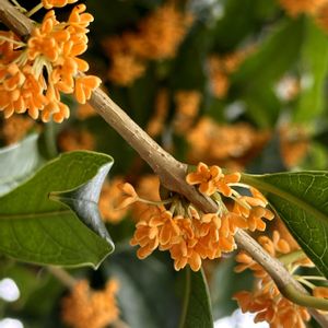 ①②キンモクセイ〜 クンクン 〜 大好きなキンモクセイの花びらを摘んで来ました🧡✨ 🫙ブランデー漬けか~砂糖漬けか〜 ソルト漬けか…ドウシヨウカナ~♡ ③ムラサキゴテンとミニ薔薇 ④薔薇 ⑤ガーデンシクラメン〜 カゴの寄せ植え